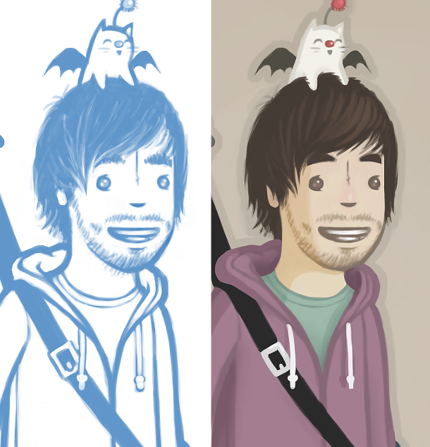 My first ever self portrait, complete with adorable moogle sidekick :)